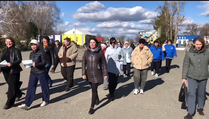 Участники акции размялись под энергичную зарядку, после чего отправились по заданному маршруту.