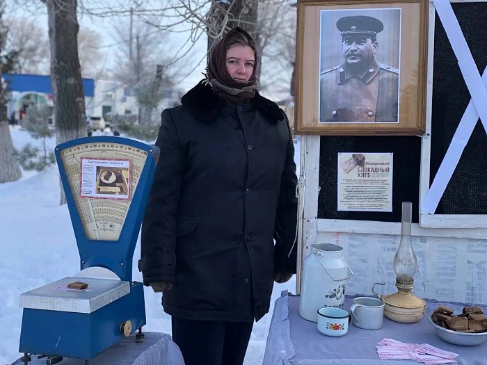 На центральной площади сотрудники Дома культуры раздавали символические порции хлеба весом 125 граммов - именно такую минимальную норму получали жители осажденного города в самые суровые дни блокады.