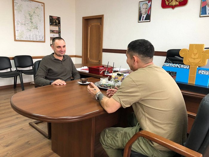 Глава района Д.Н. Живайкин встретился с военнослужащим из Питерского района, который прибыл в отпуск