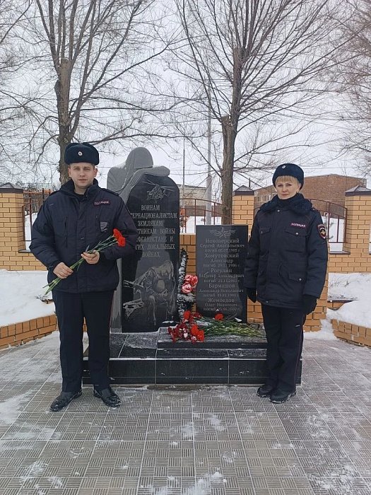 В День защитника Отечества, 23 февраля, сотрудники полиции отдали дань уважения героям, которые отдали свою жизнь, защищая Родину. Они возложили цветы у памятника "Воинам - интернационалистам". Этот жест символизирует уважение к нынешним защитникам Отечества, а также память о тех, кто не вернулся с полей сражений.