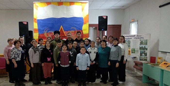 Вместе с сотрудниками библиотеки и СДК ребята говорили о структуре нашей армии, вспоминали подвиги солдат разных поколений. Школьники не только слушали, но и сами участвовали в викторине, а также смотрели видео по теме.