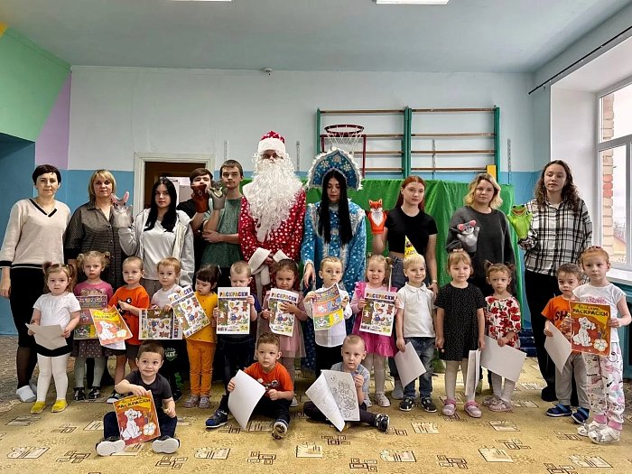 Каждый маленький зритель получил от наших студентов новогодний подарок — яркие раскраски и сладкий сюрприз. -