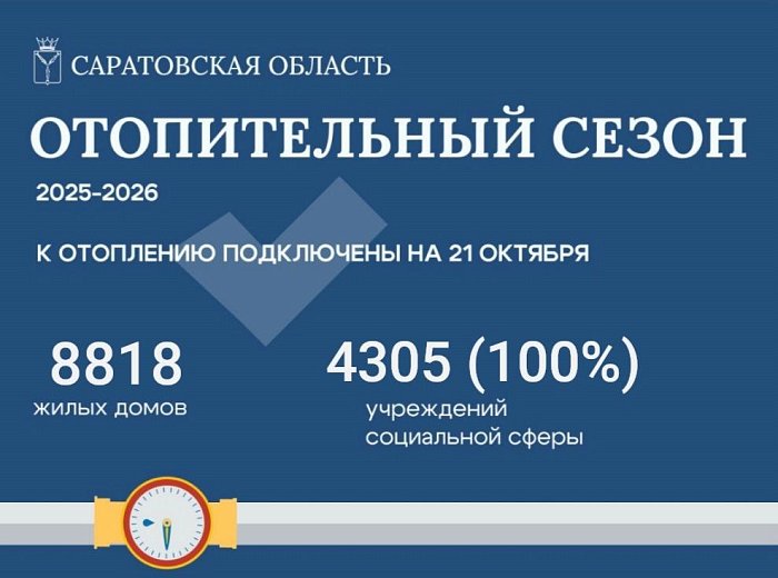 9:56 22 октябряОтопительный сезон в Саратовской области: тепло подается в 8828 жилых домов.
